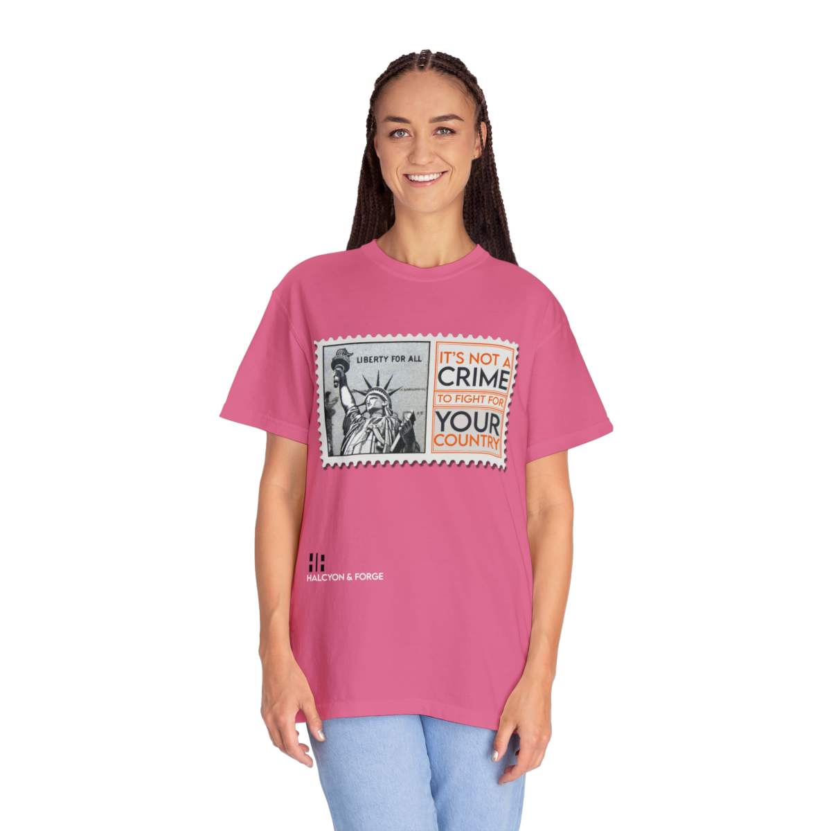 Embrace elegance and empowerment with our uniquely designed tee. Crafted from 100% ring-spun cotton, this shirt offers an unbeatable combination of softness and durability, promising you both comfort and longevity. The relaxed fit ensures it drapes gracefully on any silhouette, enhancing your natural charm. The heavy cotton composition guarantees not just a premium feel, but a garment that stands the test of time, wear after wear. This isn’t just a tee—it’s a testament to quality and a reflection of your values. Elevate your wardrobe with a piece that resonates with conviction and exudes style. Hit ‘Buy’ and let this tee be more than just clothing—it’s a statement.