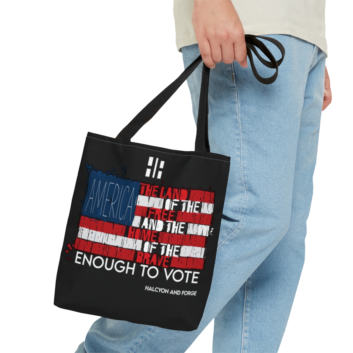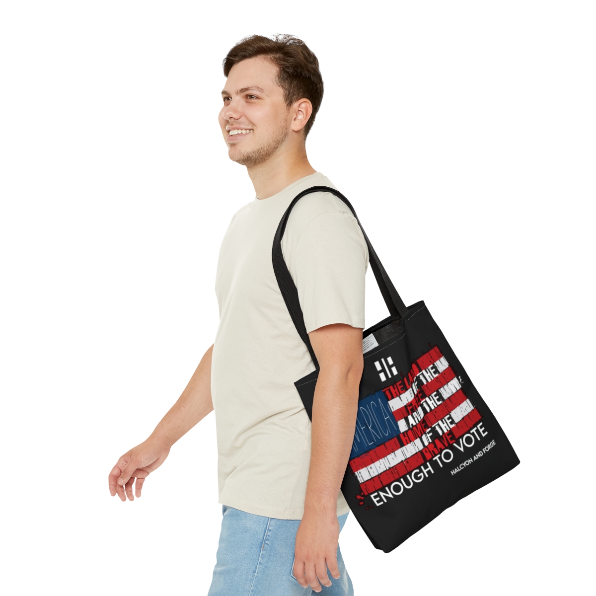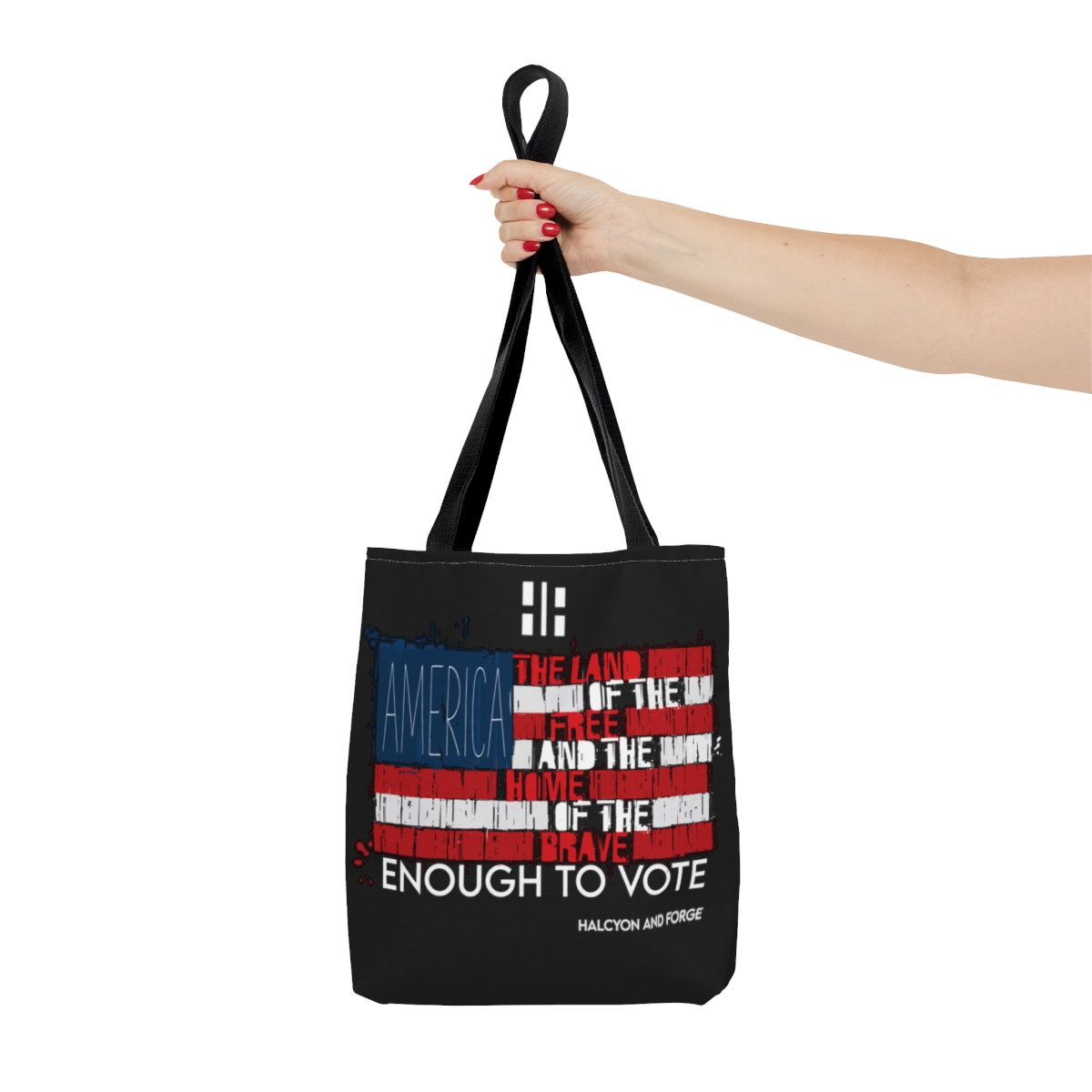 Introducing our ‘Brave Enough to Vote’ tote, a perfect fusion of statement and style. Available in a versatile range of seven striking colors and tailored to fit your needs in small, medium, or large. It’s not just a tote—it’s a daily affirmation of your values, making a bold statement with every carry. Whether it’s for a day out or a quick grocery run, this tote complements every occasion. Let your bag do the talking and echo your convictions. Choose your size, pick your color, and carry your belief with pride. Click ‘Buy’ and wear your mantra on your shoulder.