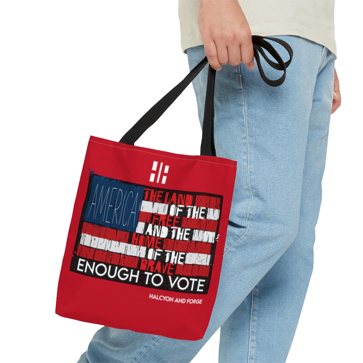 Introducing our ‘Brave Enough to Vote’ tote, a perfect fusion of statement and style. Available in a versatile range of seven striking colors and tailored to fit your needs in small, medium, or large. It’s not just a tote—it’s a daily affirmation of your values, making a bold statement with every carry. Whether it’s for a day out or a quick grocery run, this tote complements every occasion. Let your bag do the talking and echo your convictions. Choose your size, pick your color, and carry your belief with pride. Click ‘Buy’ and wear your mantra on your shoulder.