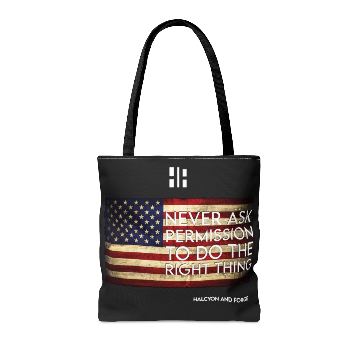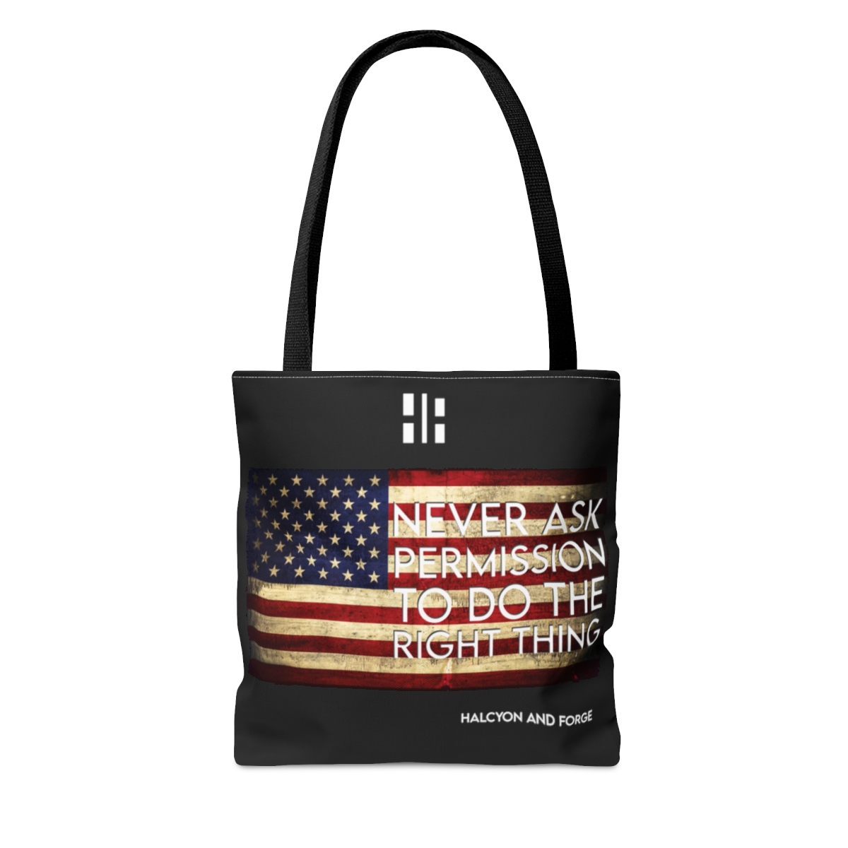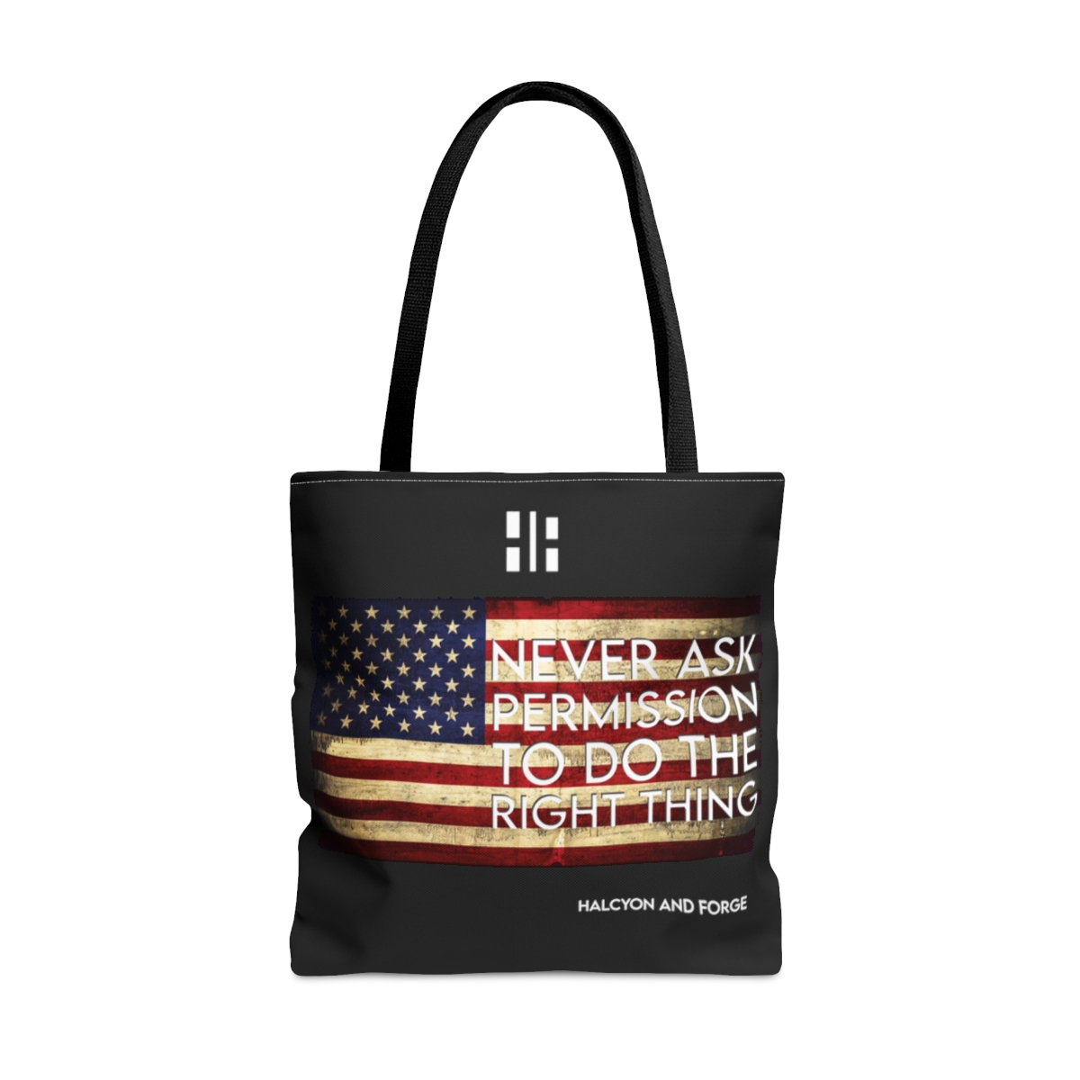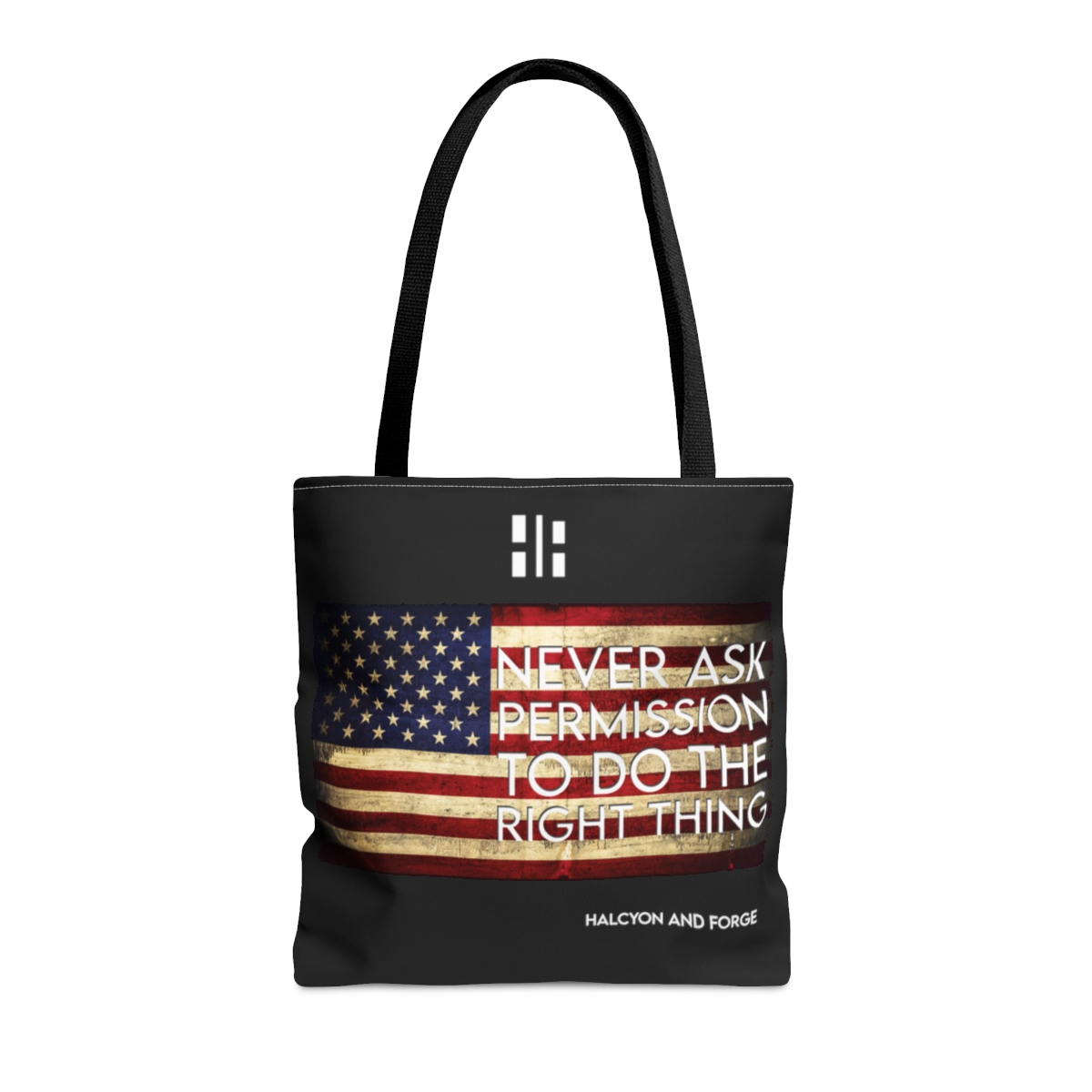 Introducing our ‘Never Ask Permission to Do the Right Thing’ tote, a perfect fusion of statement and style. Available in a versatile range of seven striking colors and tailored to fit your needs in small, medium, or large. It’s not just a tote—it’s a daily affirmation of your values, making a bold statement with every carry. Whether it’s for a day out or a quick grocery run, this tote complements every occasion. Let your bag do the talking and echo your convictions. Choose your size, pick your color, and carry your belief with pride. Click ‘Buy’ and wear your mantra on your shoulder