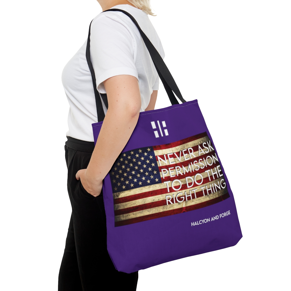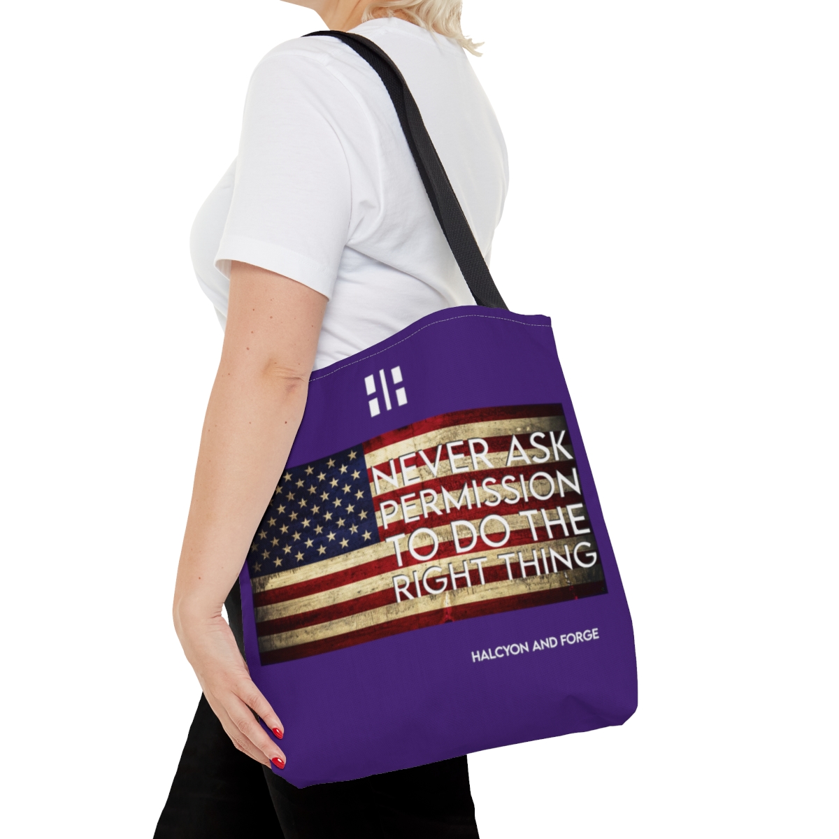 The American Spirit Tote Never Ask Purple