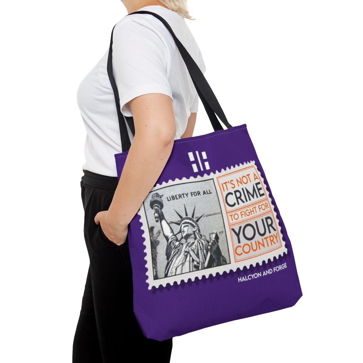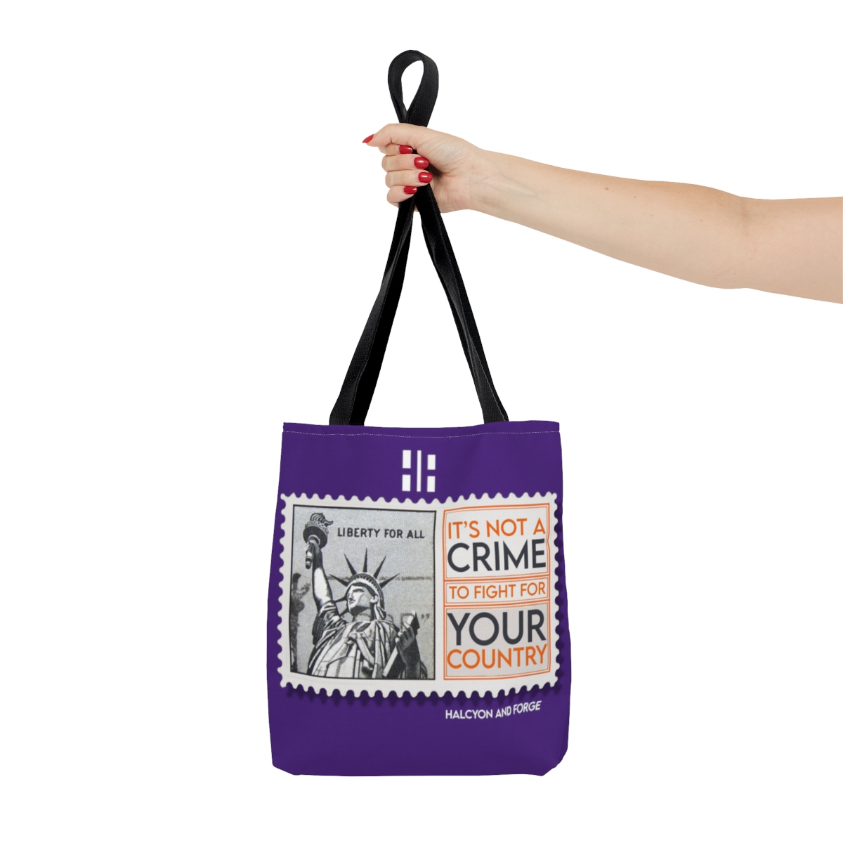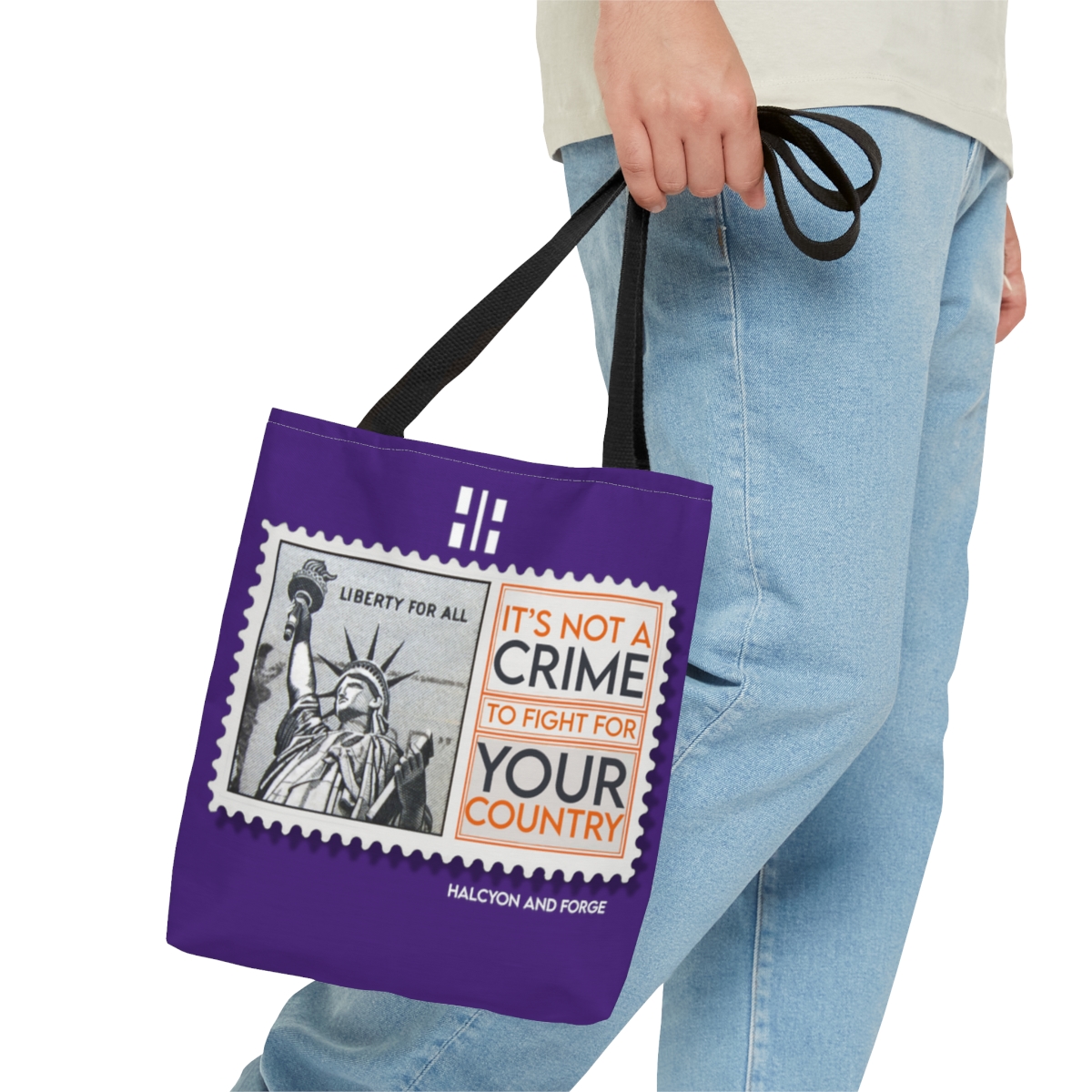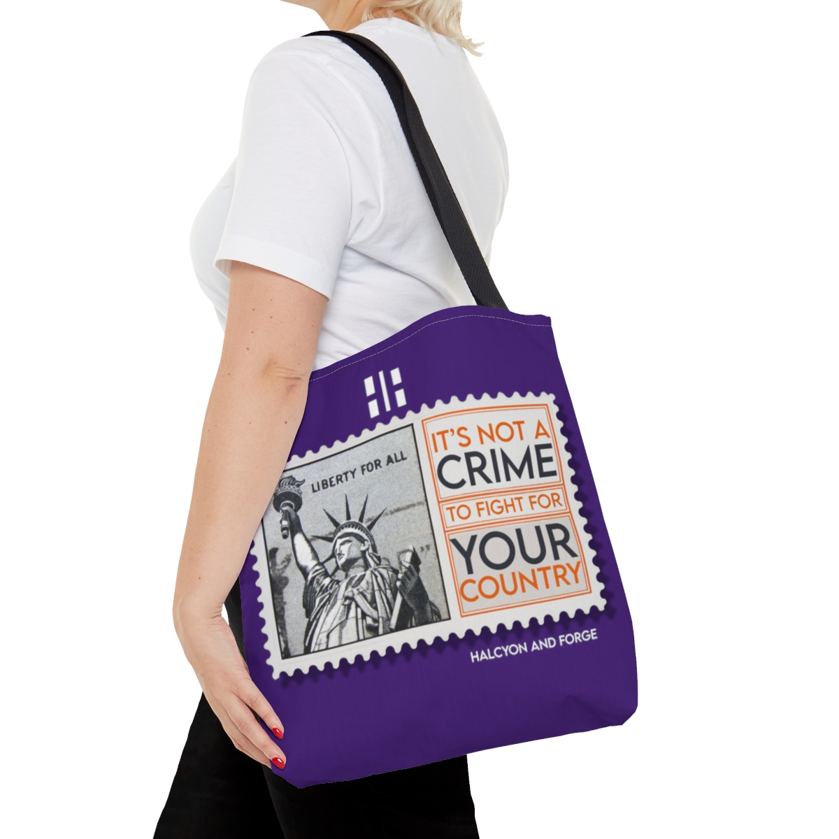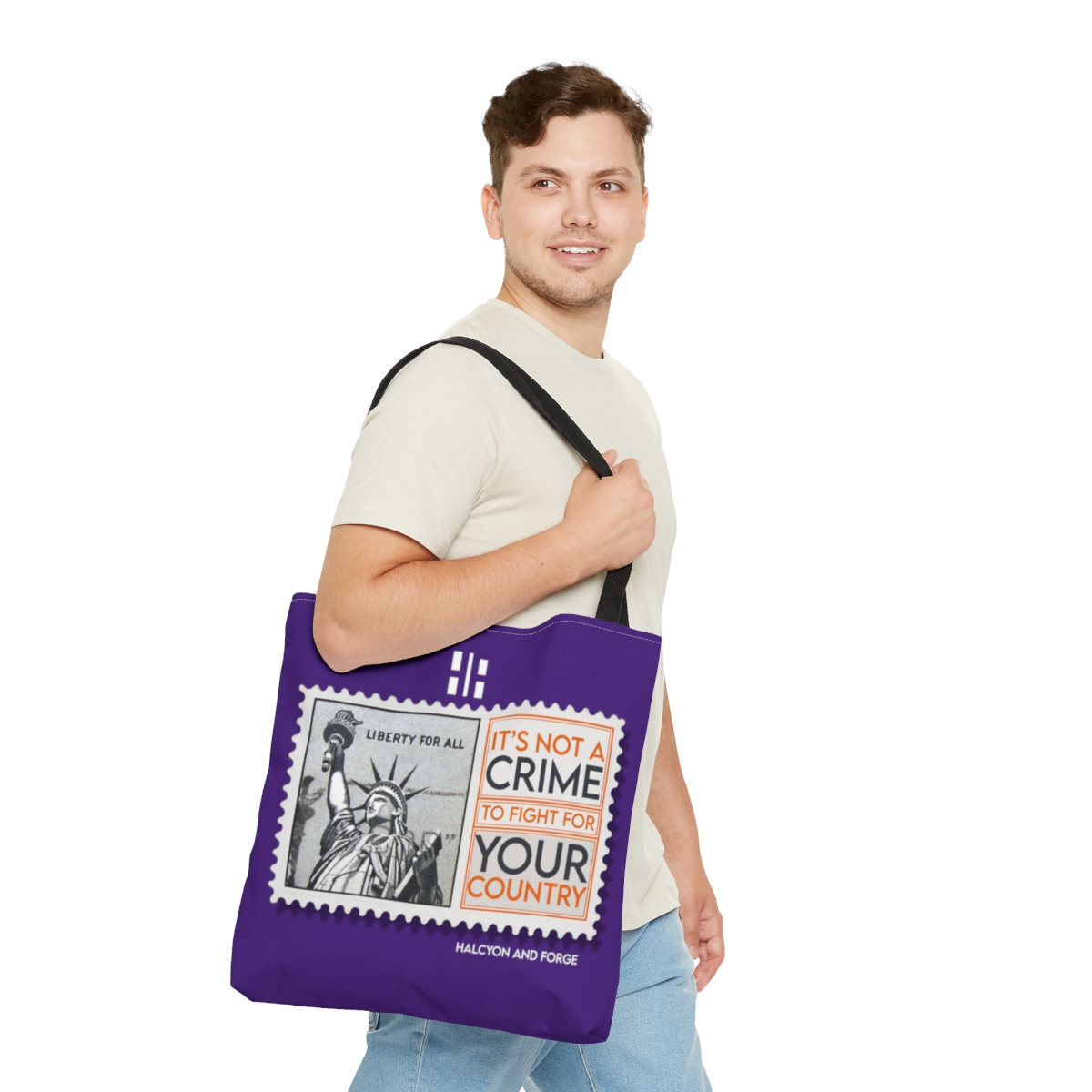 Introducing our ‘It’s Not a Crime to Fight for your Country’ tote, a perfect fusion of statement and style. Available in a versatile range of seven striking colors and tailored to fit your needs in small, medium, or large. It’s not just a tote—it’s a daily affirmation of your values, making a bold statement with every carry. Whether it’s for a day out or a quick grocery run, this tote complements every occasion. Let your bag do the talking and echo your convictions. Choose your size, pick your color, and carry your belief with pride. Click ‘Buy’ and wear your mantra on your shoulder.